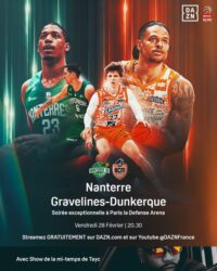Nanterre s'impose contre Gravelines pour sa 4° rencontre à La Défense Arena. Un show sportif et musical, en présence de Tayc à la mi-temps.