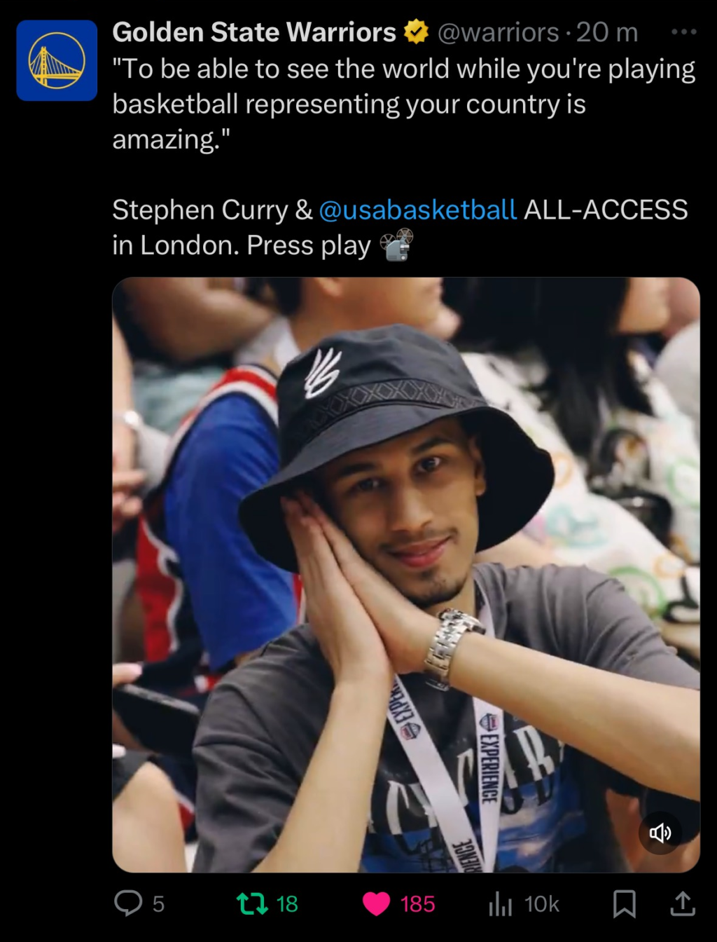 À ce moment-là, je n’aurais jamais imaginé ce qui allait se passer par la suite. Le 19 juillet 2024, j’ai vécu une expérience qui dépasse tout ce que j’aurais pu imaginer. Ce jour-là, à Londres, j’ai eu la chance de vivre un moment qui va rester gravé dans ma mémoire pour toujours. En tant que passionné de basketball, et fan des Golden State Warriors, j’étais déjà sur un petit nuage avant d’assister à l’entraînement de la Team USA, mais ce qui s’est passé ensuite a transformé cette journée en quelque chose de véritablement magique.