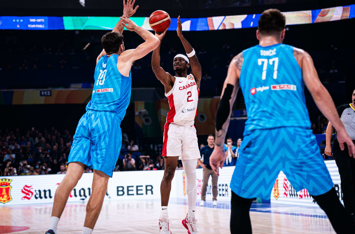 31 points à 8-12 plus 14-16 aux lancers francs et 10 rebonds et 2 interceptions pour envoyer l’équipe du Grand Nord dans le dernier carré. La dernière fois que le Canada est monté sur le podium lors d’un grand tournoi senior de basket-ball, c’était en 1986, avec une médaille de bronze à la Coupe du Monde féminine. Il faut remonter 50 ans en arrière, aux Jeux Olympiques de 1936, pour trouver la dernière médaille remportée par l’équipe masculine, une médaille d’argent après une défaite 19-8 contre les États-Unis sous une pluie battante en Allemagne nazie. Mais avec une victoire supplémentaire à la Coupe du Monde masculine 2023, cette période de disette prendra fin.