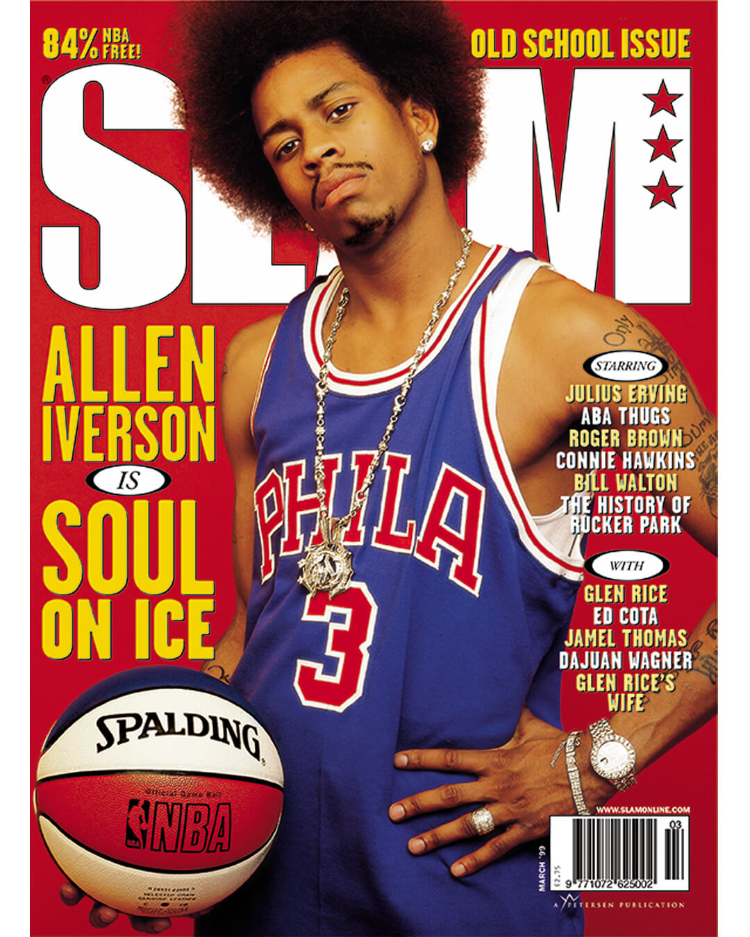 Allen Iverson illustre à la perfection ces propos. Sa personnalité et son style vestimentaire explosent sur la couverture “Soul On Ice” de 1999 : coupe afro, maillot rétro des Sixers floqué du numéro 3, ballon aux couleurs de la ABA sous le bras. Le MVP 2001 résume sa philosophie : « Je m’habille comme je veux, j’ai l’apparence que je souhaite avoir. » Avec 12 apparitions en première page, AI arrive second mais il est pourtant absent de l’une des plus célèbres, celle consacrée à la draft 1996, année où il fut sélectionné en première position.