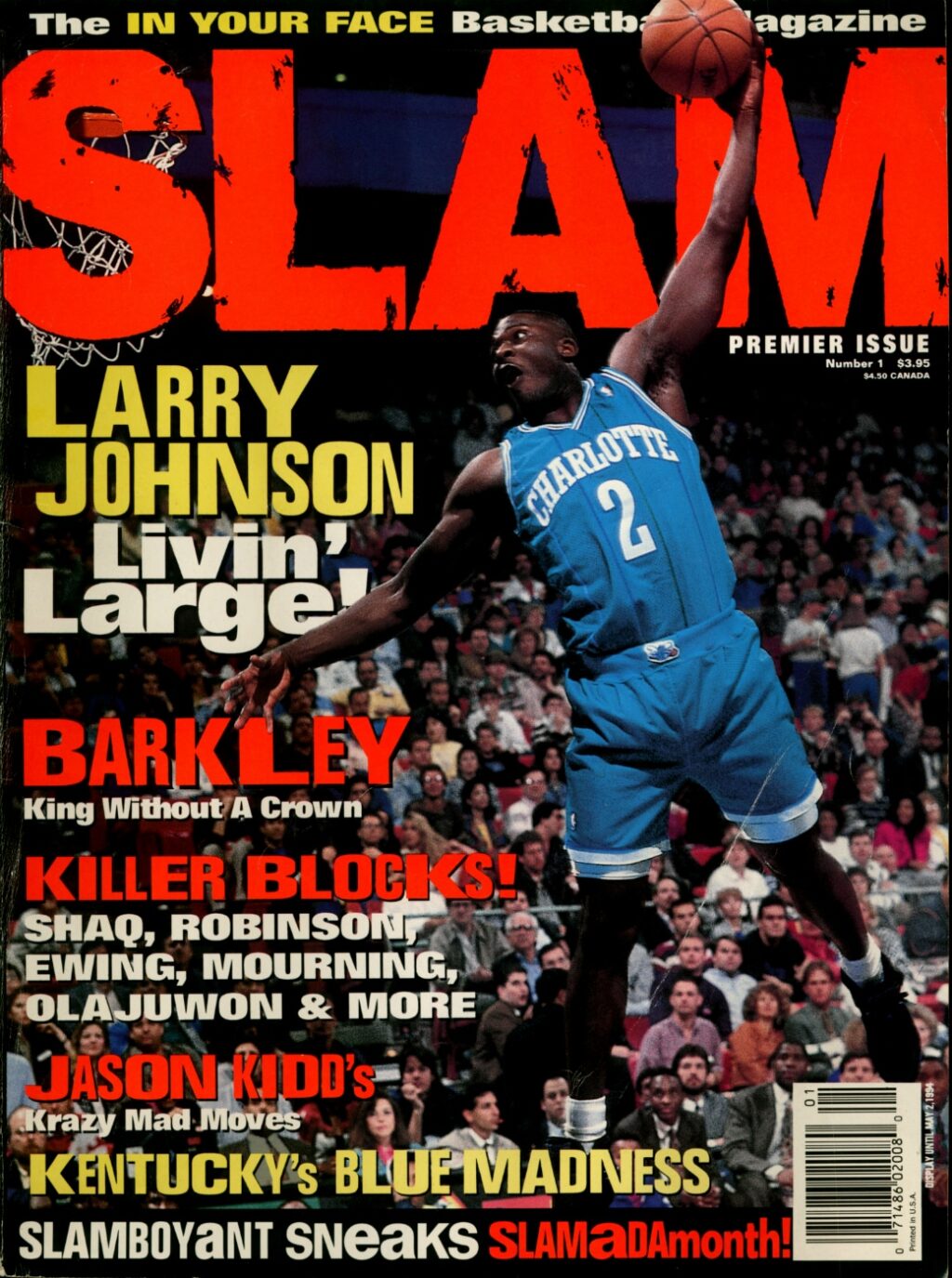 En couverture du premier numéro, Larry Johnson, ailier des Charlotte Hornets et Rookie of the Year 1992, formé à l’université UNLV dont l’esthétique flirtait déjà avec le hip-hop. Johnson incarne la vision du magazine : talent brut, style affirmé, identité forte. Pourtant, le lancement se fait sans shooting maison, comme s’en souvient Dennis Page, fondateur de la revue : « Aucun des joueurs ne voulait poser pour nous. Au tout début, nous avons dû acheter des photos existantes auprès de la NBA. »